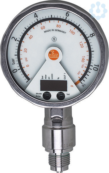 Elektronischer Drucksensor mit analoger Anzeige; -1...10 bar; -14,4...145 psi; G 1/2 Außengewinde; Schaltsignal; Analogsignal; 4...20, invertierbar; (skalierbar) mA; Steckverbindung; -25...80 °C; IP 67; IP 69K; Relativdruck; Vakuum