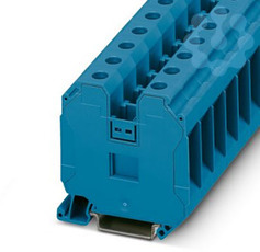 Durchgangsklemme, Nennspannung: 1000 V, Nennstrom: 125 A, Anzahl der Anschlüsse: 2, Anschlussart: Schraubanschluss, Bemessungsquerschnitt: 35 mm², Querschnitt: 1,5 mm² - 50 mm², Montageart: NS 35/7,5, NS 35/15, Farbe: blau