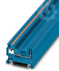 Durchgangsklemme, Nennspannung: 500 V, Nennstrom: 17,5 A, Anzahl der Anschlüsse: 2, Anschlussart: Push-in- / Steckanschluss, Bemessungsquerschnitt: 1,5 mm², 1. Etage, Querschnitt: 0,14 mm² - 1,5 mm², Montageart: NS 35/7,5, NS 35/15, Farbe: blau