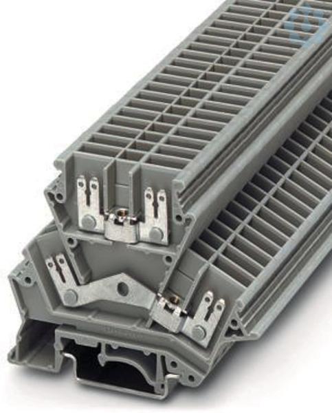 Durchgangsklemme, Nennspannung: 400 V, Nennstrom: 20 A, Anschlussart: Flachsteckanschluss, 1. und 2. Etage, Bemessungsquerschnitt: 4 mm², Querschnitt: 0,5 mm² - 6 mm², Montageart: NS 35/7,5, NS 35/15, NS 32, Farbe: grau