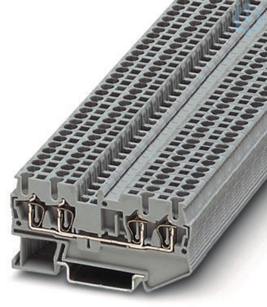 Durchgangsklemme, Nennspannung: 800 V, Nennstrom: 24 A, Anzahl der Anschlüsse: 4, Anschlussart: Zugfederanschluss, Bemessungsquerschnitt: 2,5 mm², Querschnitt: 0,08 mm² - 4 mm², Montageart: NS 35/7,5, NS 35/15, Farbe: grau