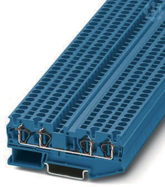 Durchgangsklemme, Nennspannung: 800 V, Nennstrom: 32 A, Anzahl der Anschlüsse: 4, Anschlussart: Zugfederanschluss, Bemessungsquerschnitt: 4 mm², 1. Etage, Querschnitt: 0,08 mm² - 6 mm², Montageart: NS 35/7,5, NS 35/15, Farbe: blau