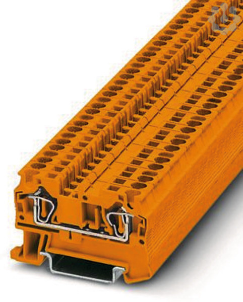 Durchgangsklemme, Nennspannung: 800 V, Nennstrom: 32 A, Anzahl der Anschlüsse: 2, Anschlussart: Zugfederanschluss, Bemessungsquerschnitt: 4 mm², 1. Etage, Querschnitt: 0,08 mm² - 6 mm², Montageart: NS 35/7,5, NS 35/15, Farbe: orange