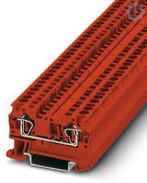 Durchgangsklemme, Nennspannung: 800 V, Nennstrom: 32 A, Anzahl der Anschlüsse: 2, Anschlussart: Zugfederanschluss, Bemessungsquerschnitt: 4 mm², 1. Etage, Querschnitt: 0,08 mm² - 6 mm², Montageart: NS 35/7,5, NS 35/15, Farbe: rot