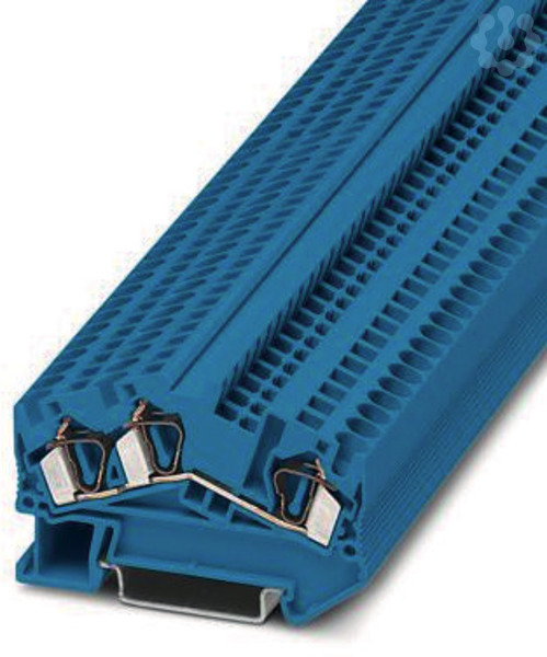 Durchgangsklemme, Nennspannung: 800 V, Nennstrom: 32 A, Anzahl der Anschlüsse: 3, Anschlussart: Zugfederanschluss, Bemessungsquerschnitt: 4 mm², 1. Etage, Querschnitt: 0,08 mm² - 6 mm², Montageart: NS 35/7,5, NS 35/15, Farbe: blau
