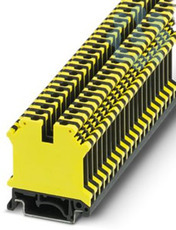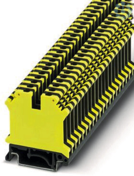 Durchgangsklemme, Nennspannung: 800 V, Nennstrom: 32 A, Anzahl der Anschlüsse: 2, Polzahl: 1, Anschlussart: Schraubanschluss, Querschnitt: 0,2 mm² - 4 mm², Montageart: NS 35/7,5, NS 35/15, NS 32, Farbe: schwarz/gelb