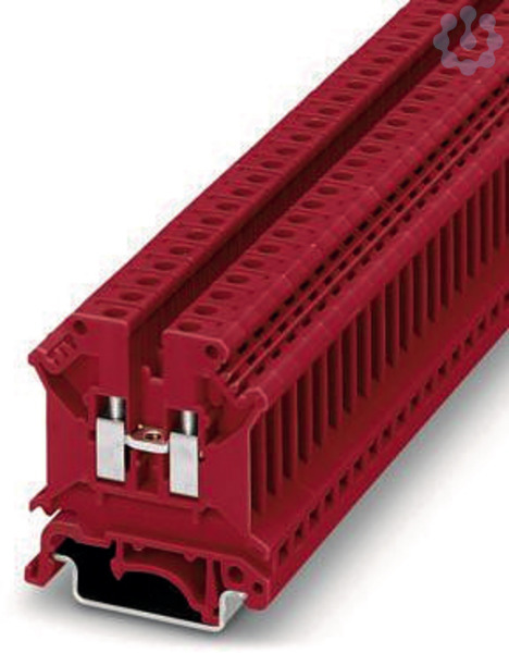 Durchgangsklemme, Nennspannung: 800 V, Nennstrom: 32 A, Anzahl der Anschlüsse: 2, Anschlussart: Schraubanschluss, Bemessungsquerschnitt: 4 mm², Querschnitt: 0,2 mm² - 6 mm², Montageart: NS 35/7,5, NS 35/15, NS 32, Farbe: rot