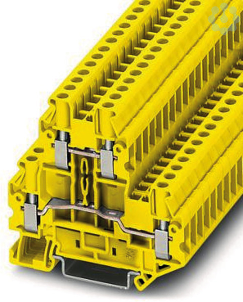 Durchgangsklemme, Nennspannung: 800 V, Nennstrom: 30 A, Anschlussart: Schraubanschluss, 1. und 2. Etage, Bemessungsquerschnitt: 4 mm², Querschnitt: 0,14 mm² - 6 mm², Montageart: NS 35/7,5, NS 35/15, Farbe: gelb