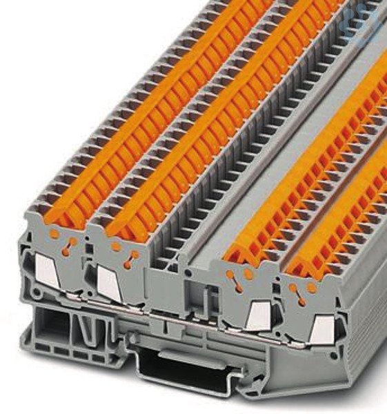 Durchgangsklemme, Nennspannung: 800 V, Nennstrom: 17,5 A, Anzahl der Anschlüsse: 4, Anschlussart: Schnellanschluss, Bemessungsquerschnitt: 1,5 mm², 1. Etage, Querschnitt: 0,25 mm² - 1,5 mm², Montageart: NS 35/7,5, NS 35/7,5, Farbe: grau