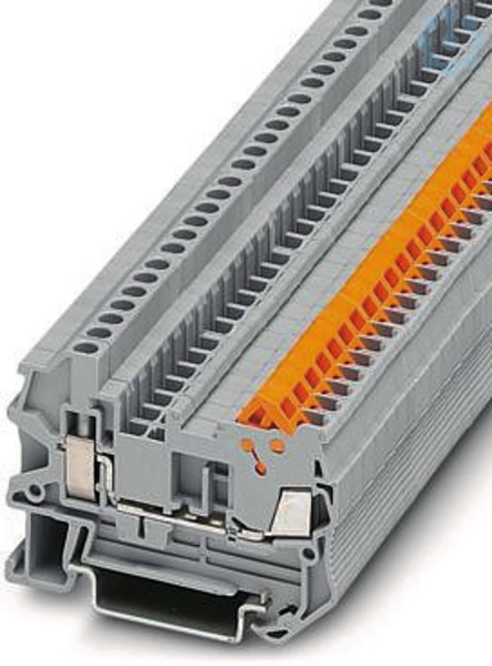 Durchgangsklemme, Nennspannung: 800 V, Nennstrom: 17,5 A, Anschlussart: Schnellanschluss, Bemessungsquerschnitt: 1,5 mm², Querschnitt: 0,25 mm² - 1,5 mm², Anschlussart: Schraubanschluss, Bemessungsquerschnitt: 1,5 mm², Querschnitt: 0,14 mm² - 4 mm², Montage: NS 35/7,5, NS 35/15, Farbe: grau