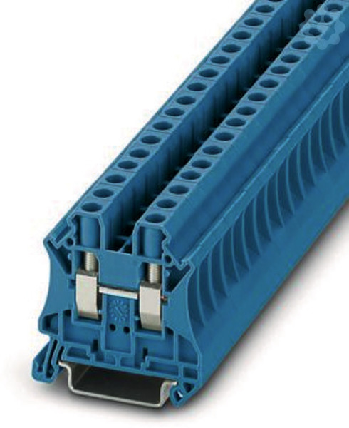 Durchgangsklemme, Nennspannung: 1000 V, Nennstrom: 41 A, Anzahl der Anschlüsse: 2, Anschlussart: Schraubanschluss, Bemessungsquerschnitt: 6 mm², Querschnitt: 0,2 mm² - 10 mm², Montageart: NS 35/7,5, NS 35/15, Farbe: blau