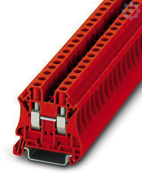 Durchgangsklemme, Nennspannung: 1000 V, Nennstrom: 41 A, Anzahl der Anschlüsse: 2, Anschlussart: Schraubanschluss, Bemessungsquerschnitt: 6 mm², Querschnitt: 0,2 mm² - 10 mm², Montageart: NS 35/7,5, NS 35/15, Farbe: rot