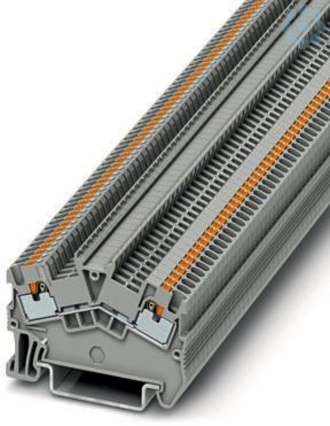 Durchgangsklemme, Nennspannung: 500 V, Nennstrom: 17,5 A, Anzahl der Anschlüsse: 2, Anschlussart: Push-in-Anschluss, Bemessungsquerschnitt: 1,5 mm², 1. Etage, Querschnitt: 0,14 mm² - 1,5 mm², Montageart: NS 35/7,5, NS 35/15, Farbe: grau