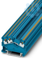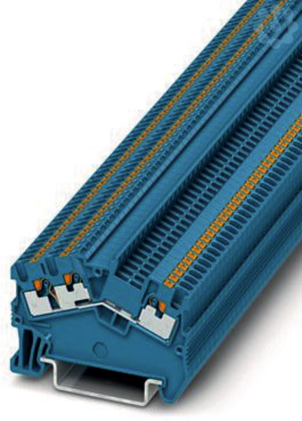 Durchgangsklemme, Nennspannung: 500 V, Nennstrom: 17,5 A, Anzahl der Anschlüsse: 3, Anschlussart: Push-in-Anschluss, Bemessungsquerschnitt: 1,5 mm², 1. Etage, Querschnitt: 0,14 mm² - 1,5 mm², Montageart: NS 35/7,5, NS 35/15, Farbe: blau