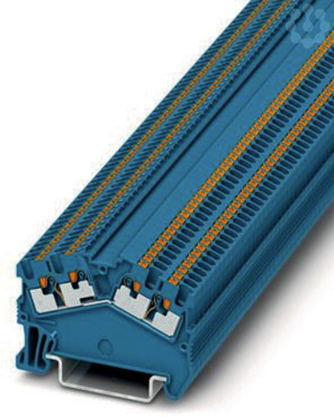 Durchgangsklemme, Nennspannung: 500 V, Nennstrom: 17,5 A, Anzahl der Anschlüsse: 4, Anschlussart: Push-in-Anschluss, Bemessungsquerschnitt: 1,5 mm², 1. Etage, Querschnitt: 0,14 mm² - 1,5 mm², Montageart: NS 35/7,5, NS 35/15, Farbe: blau