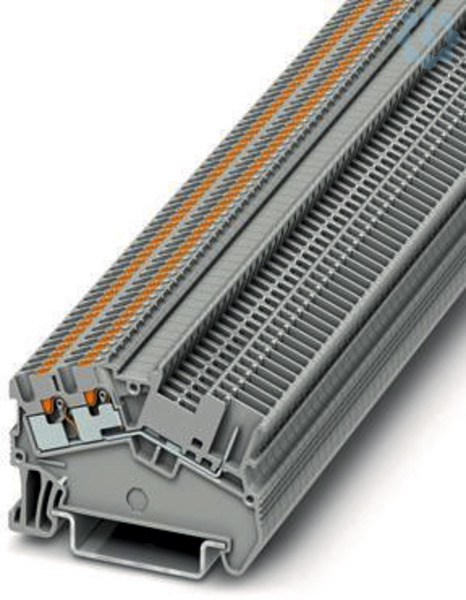 Durchgangsklemme, Nennspannung: 500 V, Nennstrom: 17,5 A, Anzahl der Anschlüsse: 3, Polzahl: 1, Anschlussart: Push-in- / Steckanschluss, Bemessungsquerschnitt: 1,5 mm², 1. Etage, Querschnitt: 0,14 mm² - 1,5 mm², Montageart: NS 35/7,5, NS 35/15, Farbe: grau