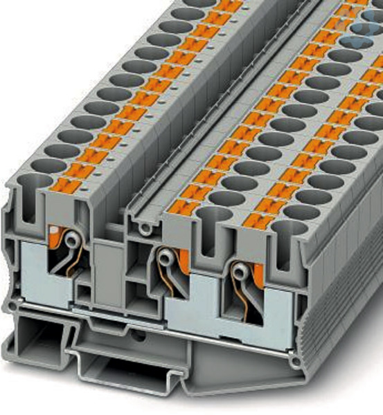 Durchgangsklemme, Nennspannung: 1000 V, Nennstrom: 57 A, Anzahl der Anschlüsse: 3, Anschlussart: Push-in-Anschluss, Bemessungsquerschnitt: 10 mm², Querschnitt: 0,5 mm² - 16 mm², Montageart: NS 35/7,5, NS 35/15, Farbe: grau