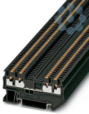 Durchgangsklemme, Nennspannung: 500 V, Nennstrom: 17,5 A, Anzahl der Anschlüsse: 4, Anschlussart: Push-in-Anschluss, Bemessungsquerschnitt: 1,5 mm², 1. Etage, Querschnitt: 0,14 mm² - 1,5 mm², Montageart: NS 35/7,5, NS 35/15, Farbe: schwarz