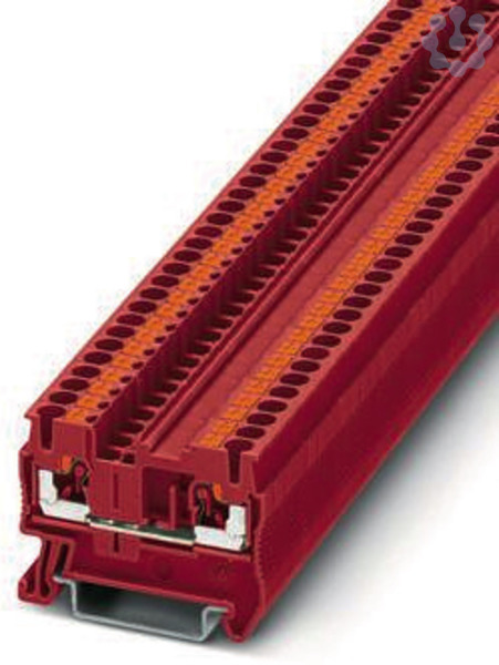 Durchgangsklemme, Nennspannung: 800 V, Nennstrom: 24 A, Anzahl der Anschlüsse: 2, Polzahl: 1, Anschlussart: Push-in-Anschluss, Bemessungsquerschnitt: 2,5 mm², Querschnitt: 0,14 mm² - 4 mm², Montageart: NS 35/7,5, NS 35/15, Farbe: rot