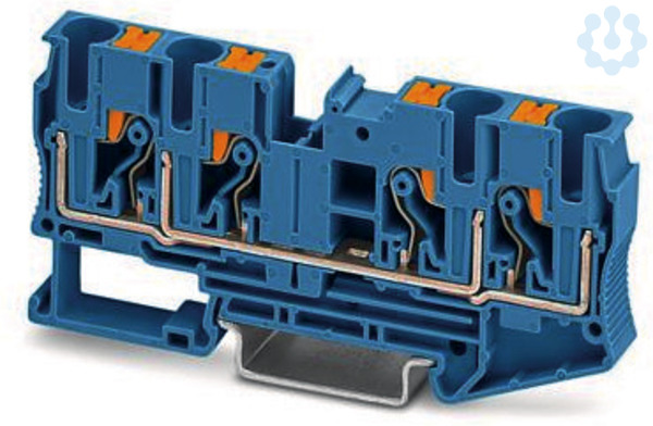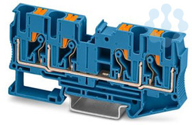 Durchgangsklemme, Nennspannung: 1000 V, Nennstrom: 41 A, Anzahl der Anschlüsse: 4, Anschlussart: Push-in-Anschluss, Bemessungsquerschnitt: 6 mm², Querschnitt: 0,5 mm² - 10 mm², Montageart: NS 35/7,5, NS 35/15, Farbe: blau