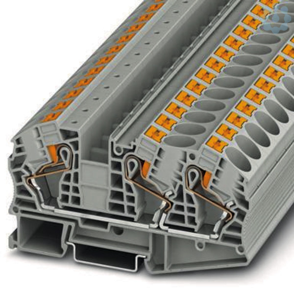 Durchgangsklemme, Nennspannung: 1000 V, Nennstrom: 76 A, Anzahl der Anschlüsse: 3, Anschlussart: Push-in-Anschluss, Bemessungsquerschnitt: 16 mm², Querschnitt: 0,5 mm² - 25 mm², Montageart: NS 35/7,5, NS 35/15, Farbe: grau