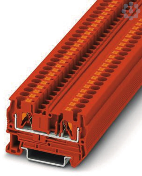 Durchgangsklemme, Nennspannung: 800 V, Nennstrom: 32 A, Anzahl der Anschlüsse: 2, Anschlussart: Push-in-Anschluss, Bemessungsquerschnitt: 4 mm², Querschnitt: 0,2 mm² - 6 mm², Montageart: NS 35/7,5, NS 35/15, Farbe: rot
