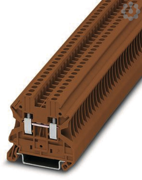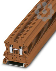 Durchgangsklemme, Nennspannung: 1000 V, Nennstrom: 24 A, Anzahl der Anschlüsse: 2, Anschlussart: Schraubanschluss, Bemessungsquerschnitt: 2,5 mm², Querschnitt: 0,14 mm² - 4 mm², Montageart: NS 35/7,5, NS 35/15, Farbe: braun