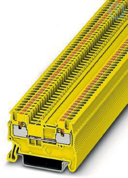 Durchgangsklemme, Nennspannung: 500 V, Nennstrom: 17,5 A, Anzahl der Anschlüsse: 2, Anschlussart: Push-in-Anschluss, Bemessungsquerschnitt: 1,5 mm², 1. Etage, Querschnitt: 0,14 mm² - 1,5 mm², Montageart: NS 35/7,5, NS 35/15, Farbe: gelb