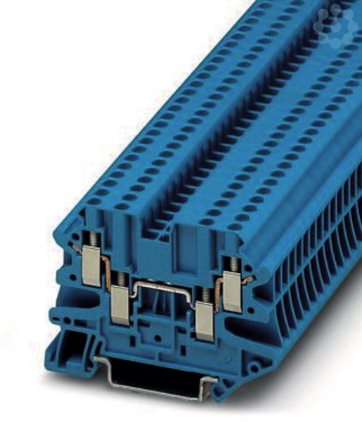 Durchgangsklemme, Nennspannung: 500 V, Nennstrom: 24 A, Anzahl der Anschlüsse: 4, Anschlussart: Schraubanschluss, Bemessungsquerschnitt: 2,5 mm², Querschnitt: 0,14 mm² - 4 mm², Montageart: NS 35/7,5, NS 35/15, Farbe: blau