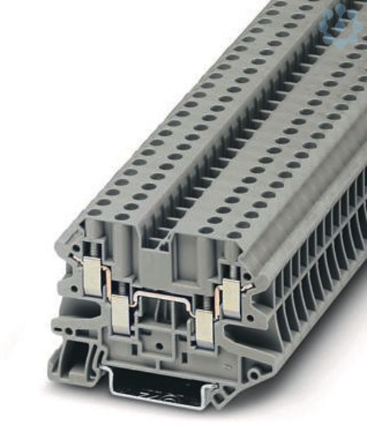 Durchgangsklemme, Nennspannung: 500 V, Nennstrom: 32 A, Anzahl der Anschlüsse: 4, Anschlussart: Schraubanschluss, Bemessungsquerschnitt: 4 mm², Querschnitt: 0,14 mm² - 6 mm², Montageart: NS 35/7,5, NS 35/15, Farbe: grau