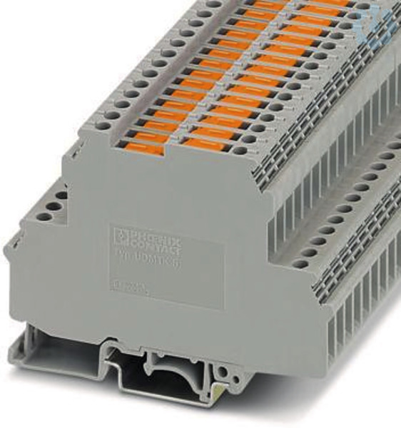 Durchgangsklemme, Nennspannung: 400 V, Nennstrom: 10 A, 1. und 2. Etage, Anschlussart: Schraubanschluss, Bemessungsquerschnitt: 4 mm², Querschnitt: 0,2 mm² - 4 mm², 2. Etage, Anschlussart: Schraubanschluss, Bemessungsquerschnitt: 4 mm², Querschnitt: 0,2 mm² - 4 mm², Montage: NS 35/7,5, NS 35/15, NS 32, Farbe: grau