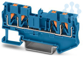 Durchgangsklemme, Nennspannung: 800 V, Nennstrom: 24 A, Anzahl der Anschlüsse: 4, Anschlussart: Push-in-Anschluss, Bemessungsquerschnitt: 2,5 mm², Querschnitt: 0,14 mm² - 4 mm², Montageart: NS 35/7,5, NS 35/15, Farbe: blau