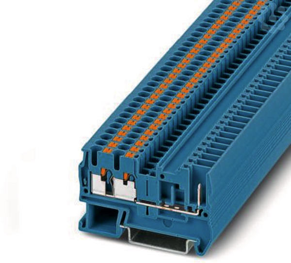 Durchgangsklemme, Nennspannung: 500 V, Nennstrom: 24 A, Anzahl der Anschlüsse: 3, Polzahl: 1, Anschlussart: Push-in- / Steckanschluss, Bemessungsquerschnitt: 2,5 mm², Querschnitt: 0,14 mm² - 4 mm², Montageart: NS 35/7,5, NS 35/15, Farbe: blau
