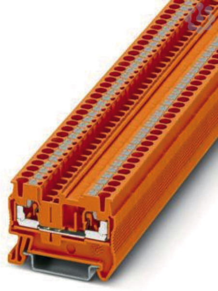 Durchgangsklemme, Nennspannung: 800 V, Nennstrom: 24 A, Anzahl der Anschlüsse: 2, Polzahl: 1, Anschlussart: Push-in-Anschluss, Bemessungsquerschnitt: 2,5 mm², Querschnitt: 0,14 mm² - 4 mm², Montageart: NS 35/7,5, NS 35/15, Farbe: orange