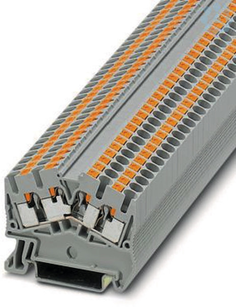 Durchgangsklemme, Nennspannung: 800 V, Nennstrom: 24 A, Anzahl der Anschlüsse: 4, Anschlussart: Push-in-Anschluss, Bemessungsquerschnitt: 2,5 mm², 1. Etage, Querschnitt: 0,14 mm² - 4 mm², Montageart: NS 35/7,5, NS 35/15, Farbe: grau