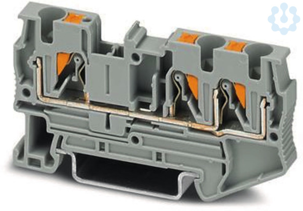 Durchgangsklemme, Nennspannung: 800 V, Nennstrom: 32 A, Anzahl der Anschlüsse: 3, Anschlussart: Push-in-Anschluss, Bemessungsquerschnitt: 4 mm², Querschnitt: 0,2 mm² - 6 mm², Montageart: NS 35/7,5, NS 35/15, Farbe: grau