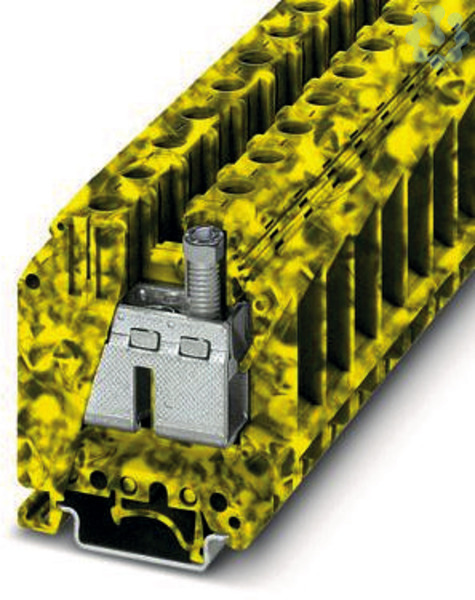 Durchgangsklemme, mit Innensechskantschrauben, Nennspannung: 1000 V, Nennstrom: 150 A, Anzahl der Anschlüsse: 2, Anschlussart: Schraubanschluss, Querschnitt: 0,75 mm² - 50 mm², Montageart: NS 32, NS 35/7,5, NS 35/15, Farbe: schwarz/gelb