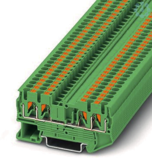 Durchgangsklemme, Nennspannung: 800 V, Nennstrom: 24 A, Anzahl der Anschlüsse: 4, Anschlussart: Push-in-Anschluss, Bemessungsquerschnitt: 2,5 mm², Querschnitt: 0,14 mm² - 4 mm², Montageart: NS 35/7,5, NS 35/15, Farbe: grün