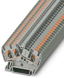 Durchgangsklemme, Nennspannung: 800 V, Nennstrom: 32 A, Anzahl der Anschlüsse: 3, Anschlussart: Push-in-Anschluss, Bemessungsquerschnitt: 4 mm², 1. Etage, Querschnitt: 0,2 mm² - 6 mm², Montageart: NS 35/7,5, NS 35/15, Farbe: grau