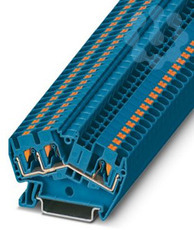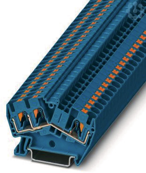 Durchgangsklemme, Nennspannung: 800 V, Nennstrom: 32 A, Anzahl der Anschlüsse: 3, Anschlussart: Push-in-Anschluss, Bemessungsquerschnitt: 4 mm², 1. Etage, Querschnitt: 0,2 mm² - 6 mm², Montageart: NS 35/7,5, NS 35/15, Farbe: blau