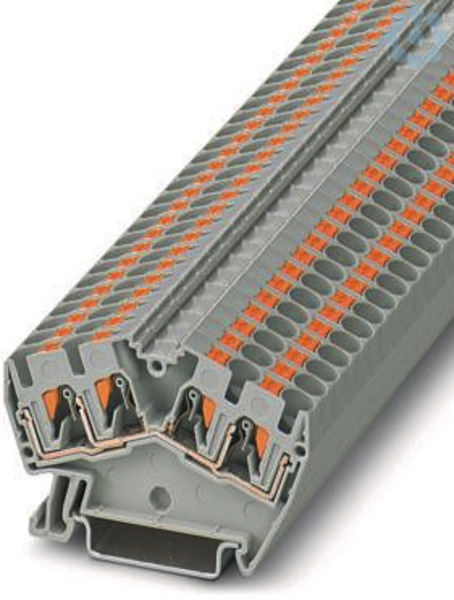 Durchgangsklemme, Nennspannung: 800 V, Nennstrom: 32 A, Anzahl der Anschlüsse: 4, Anschlussart: Push-in-Anschluss, Bemessungsquerschnitt: 4 mm², 1. Etage, Querschnitt: 0,2 mm² - 6 mm², Montageart: NS 35/7,5, NS 35/15, Farbe: grau