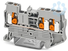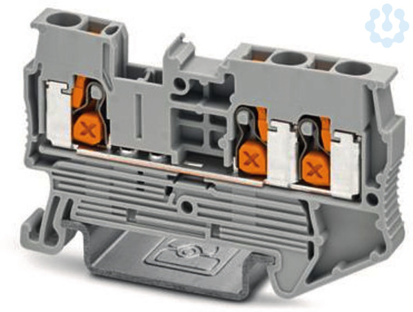 Durchgangsklemme, Nennspannung: 800 V, Nennstrom: 24 A, Anzahl der Anschlüsse: 3, Polzahl: 1, Anschlussart: Push-X-Anschluss, Bemessungsquerschnitt: 2,5 mm², Querschnitt: 0,5 mm² - 4 mm², Montageart: NS 35/7,5, NS 35/15, Farbe: grau