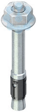 Durchsteckanker mit metrischem Anschlußgewinde M 6, einschließlich galvanisch verzinkter Flanschmutter. Zulässige Lasten für zentrischen Zug, Querlast und Schrägzug unter jedem Winkel sowie Ankerkennwerte und BauteilAbmessungen für Betonfestigkeitsklassen ≥ B 25 bzw. C 20/25 und ≤ B 55 bzw. C 50/60. Bei der Bemessung ist der gesamte Zulassungsbescheid Nr.: ETA-18/0541 zu beachten! Für den Außenbereich empfehlen wir Durchsteckanker aus Edelstahl! Zur Verwendung im Funktionserhalt bzw. für Unterdecken mit brandschutztechnischen Anforderungen (Muster-Leitungsanlagen-Richtlinie MLAR 2/2015) bitte Zusatzvorschriften beachten! Anwendungsbereich : Der Anker darf als Mehrfachbefestigung für die Verankerung leichter Deckenbekleidungen und Unterdecken nach DIN 18168, sowie für statisch vergleichbare Verankerungen bis 1 kN/m² - auch in der aus Lastspannungen erzeugten Zugzone - verwendet werden. Setzen des Durchsteckankers, dass die effektive Verankerungstiefe eingehalten wird. Die Übereinstimmung wird sichergestellt mit der Einhaltung der zulässigen Anbauteildicke (Klemmbereich). Technische Angaben Anschlußgewinde : M 6 Gesamtlänge L : 50 mm Bohrnenn-Ø : 6 mm Klemmbereich t fix : ≤ 5 mm effektive Verankerungstiefe h ef : 30 mm empfohlenes Drehmoment : 4 Nm Schlüsselweite : 10 Werkstoff : Stahl, galvanisch verzinkt nach DIN EN ISO 19598/4042, blaupassiviert Zulassungs-Nr. : ETA-18/0541 DoP NI001