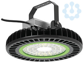 5000K - Lichtfarbe: kalt weiß 300Watt 39000lm SMD 3030 Chips - 230V AC - CRI>80 - 132 lm/W UGR<27 bei 110° Abstrahlwinkel - IP65 - DALI dim D-Zeichen - Größe: Ø 400x260mm - grüner Ring