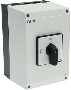 EIN-AUS-Schalter, Sortiment: EIN-AUS-Schalter, Typkenner: P3, mit schwarzem Knebel und Frontschild, Information zum Lieferumfang: Hilfsschalterkontakt oder Neutralleiter nachrüstbar., 3-polig, Schutzart: IP65, Bauform: Aufbau, Bemessungsbetriebsleistung AC-23A, 50 - 60 Hz 400 V: P = 55 kW, Bemessungsdauerstrom: Iu = 100 A, Normen und Bestimmungen: IEC/EN 60947, VDE 0660, IEC/EN 60204, CSA, UL, Lasttrennschalter nach IEC/EN 60947-3
