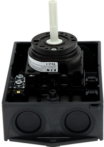 EIN-AUS-Schalter, Sortiment: EIN-AUS-Schalter, Typkenner: T0, mit schwarzem Knebel und Frontschild, 3-polig, Schutzart: IP65, Bauform: Oberflächenmontage, Schaltwinkel: 90 °, Schaltverhalten: rastend, Frontschild: 0-1, Bemessungsbetriebsleistung AC-23A, 50 - 60 Hz 400 V: P = 5,5 kW, Bemessungsdauerstrom: Iu = 20 A, 2 Baueinheit(en), Normen und Bestimmungen: IEC/EN 60947, VDE 0660, IEC/EN 60204, Lasttrennschalter nach IEC/EN 60947-3