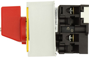 EIN-AUS-Schalter, Sortiment: EIN-AUS-Schalter, Typkenner: T0, Stopp-Funktion: NOT-AUS-Funktion, mit rotem Knebel und gelbem Frontschild, 2-polig, Schutzart: Front IP30, Bauform: Montage elektrischer Verteiler, Schaltwinkel: 90 °, Schaltverhalten: rastend, Frontschild: 0-1, Bemessungsbetriebsleistung AC-23A, 50 - 60 Hz 400 V: P = 5,5 kW, Bemessungsdauerstrom: Iu = 20 A, 1 Baueinheit(en), Normen und Bestimmungen: IEC/EN 60947, VDE 0660, IEC/EN 60204, CSA, UL, Lasttrennschalter nach IEC/EN 60947-3