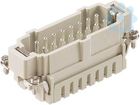 Einsätze, Käfigzugfederanschluss, Stift, Polycarbonat (PC), RAL 7032 (kieselgrau), Bemessungsstrom: 16 A, Baugröße: 16 B, Kontakte: 16, Leiterquerschnitt: 0,14...2,5 mm², Kupferlegierung, versilbert