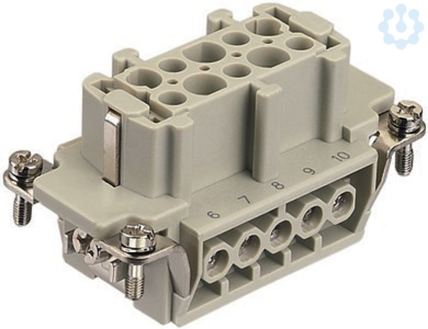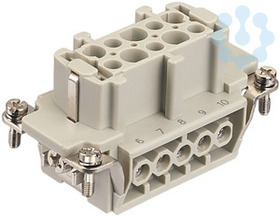 Einsätze, Schraubanschluss, Buchse, Polycarbonat (PC), RAL 7032 (kieselgrau), Bemessungsstrom: 16 A, Baugröße: 10 B, Kontakte: 10, Leiterquerschnitt: 0,75...2,5 mm², Kupferlegierung, versilbert