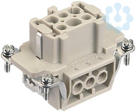 Einsätze, Schraubanschluss, Buchse, Polycarbonat (PC), RAL 7032 (kieselgrau), Bemessungsstrom: 16 A, Baugröße: 6 B, Kontakte: 6, Leiterquerschnitt: 0,75...2,5 mm², Kupferlegierung, versilbert